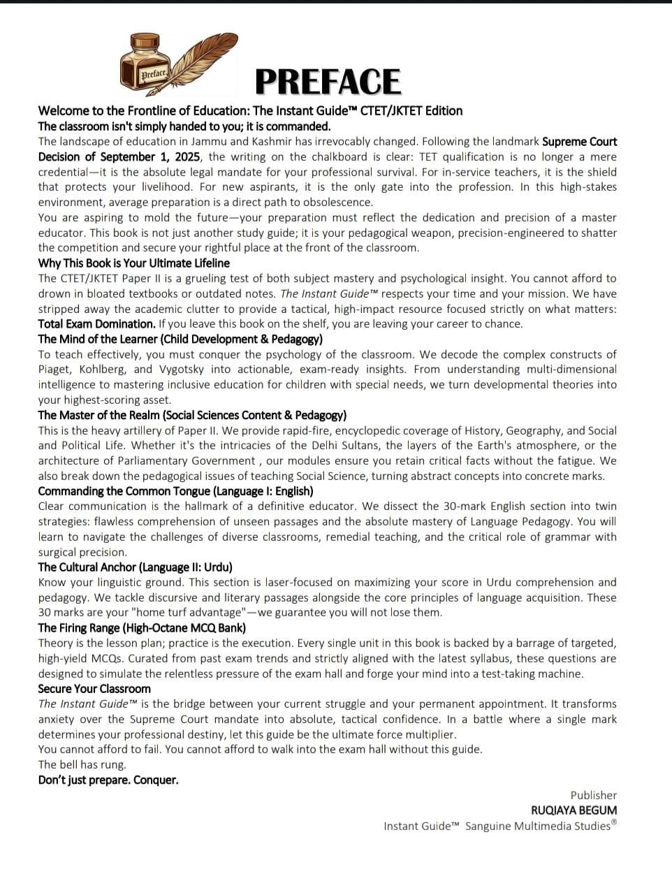 The CTET JKTET Paper 2 Social Science Book is a comprehensive and exam-focused preparation guide designed for aspirants preparing for CTET and JKTET examinations. This Instant Guide CTET JKTET book is specially created to cover the complete syllabus of Paper 2 with Social Science, making it an ideal resource for candidates aiming to succeed in teaching eligibility exams.
