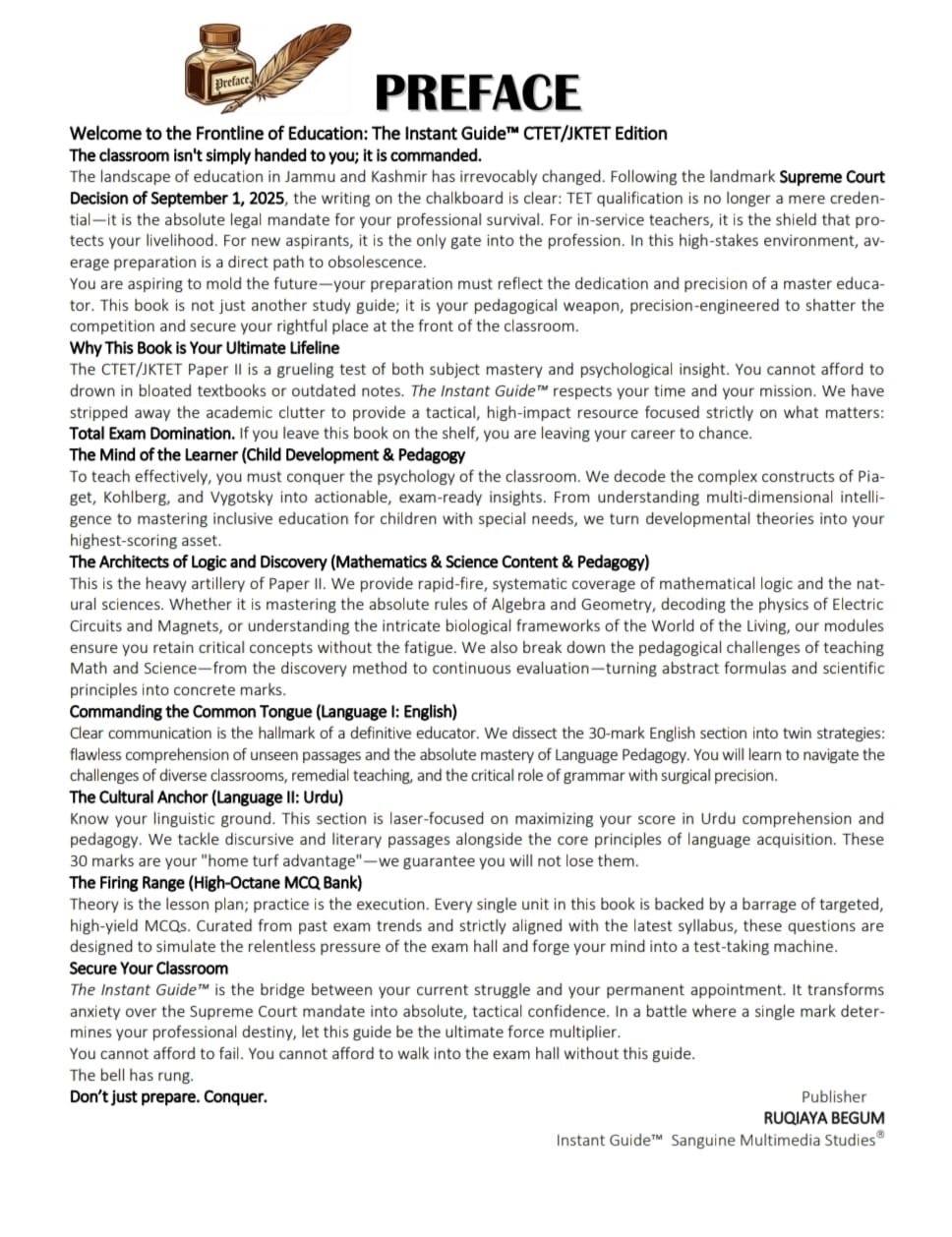 Instant Guide CTET | JKTET Paper 2 Complete (With Math & Science) is a comprehensive and exam-focused preparation book designed for aspirants preparing for CTET and JKTET examinations.