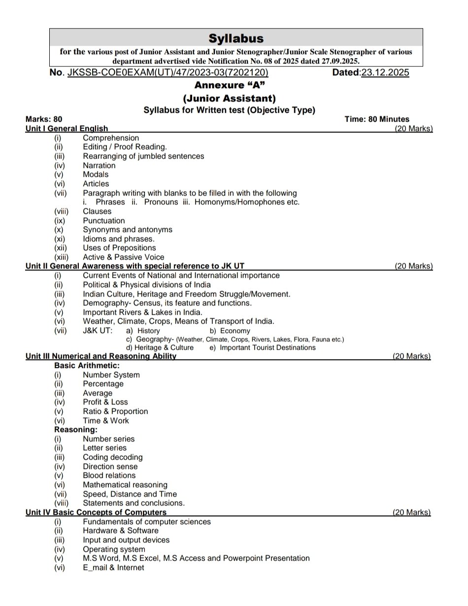 This guide provides topic-wise theory explained in a simple and clear manner, followed by topic-wise MCQs to help candidates practice immediately after learning each concept. All questions are framed strictly according to the latest JKSSB exam pattern and syllabus.